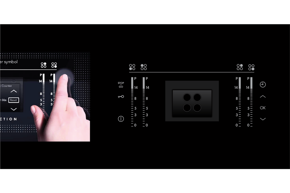 This was not a touch screen, it had touch keys, so it was vital that the graphics on the keys were aligned with the functions on the screen. I also developed the horizontal and vertical touch slider graphics which appear on the hob interface.